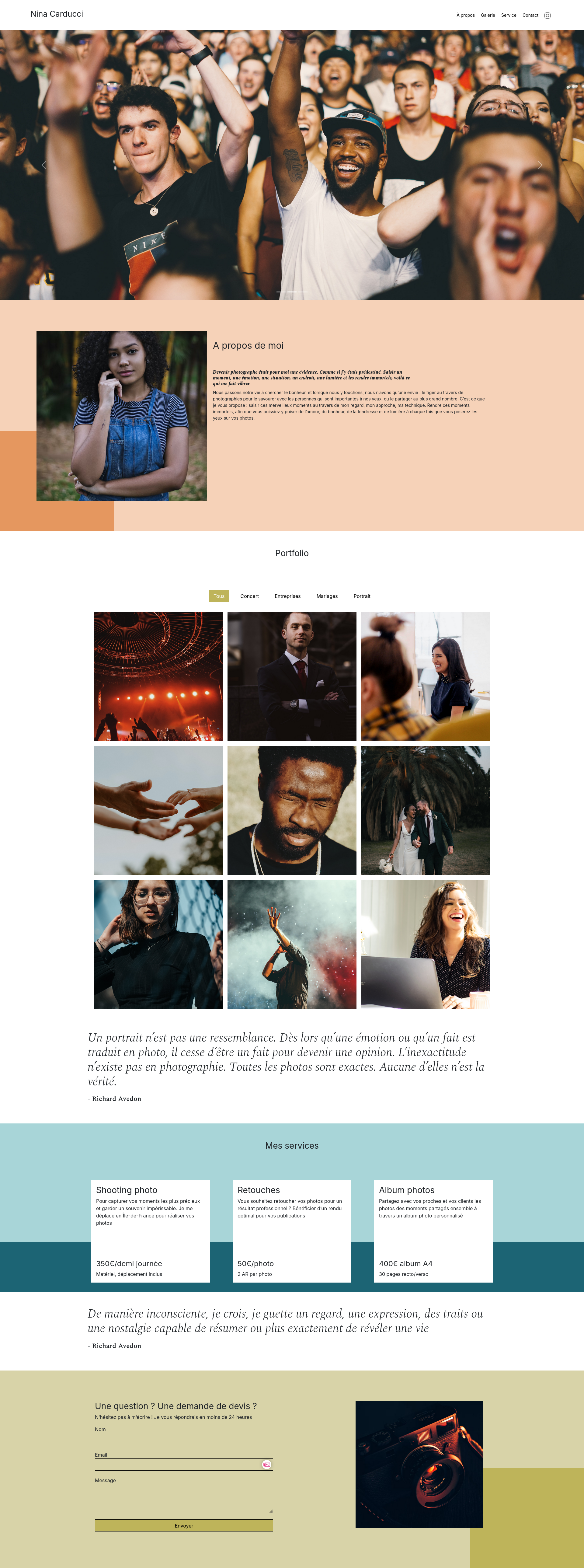 • Client: Nina Carducci, photographe portraits & événementiel (site vitrine hébergé sur GitHub Pages).